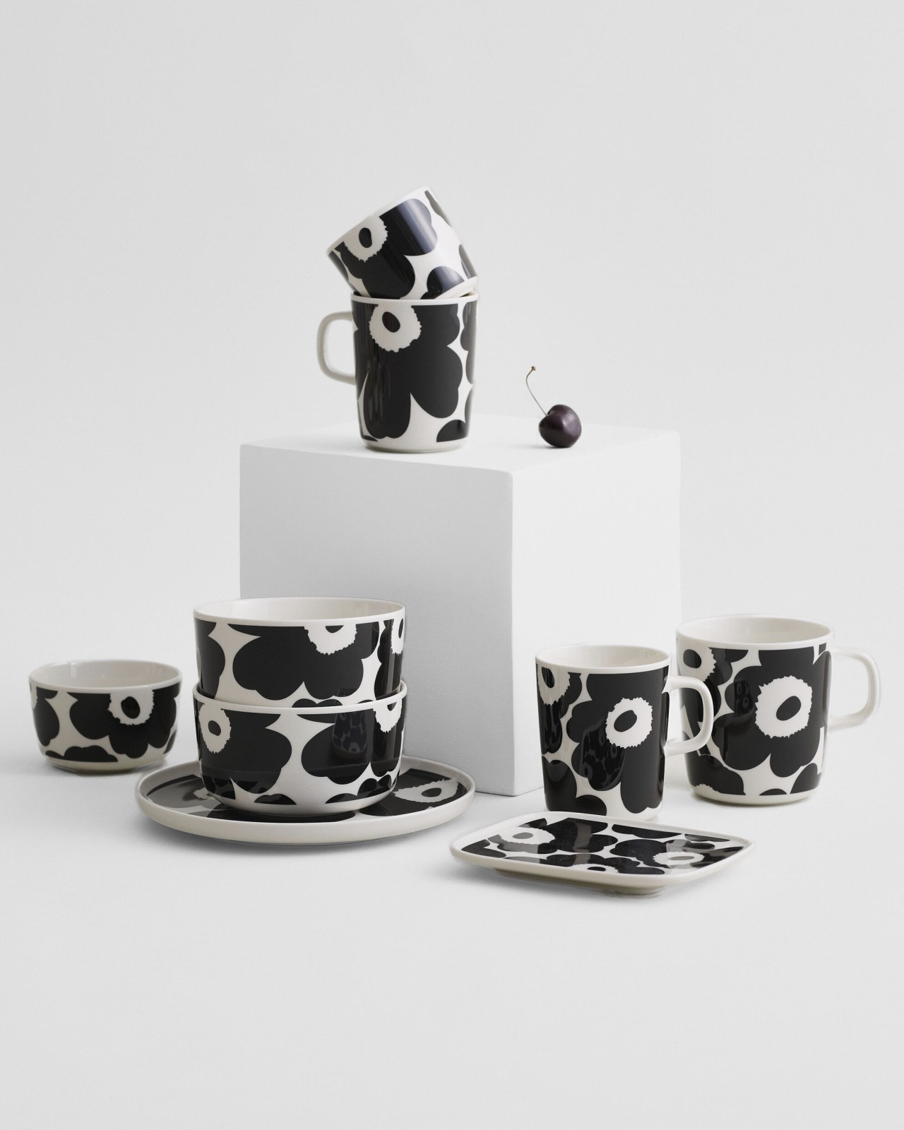 Näitä tuotteita ovat tarjottimet, mukit, lasit, kupit, lautaset, kulhot, purkit ja servetit.
