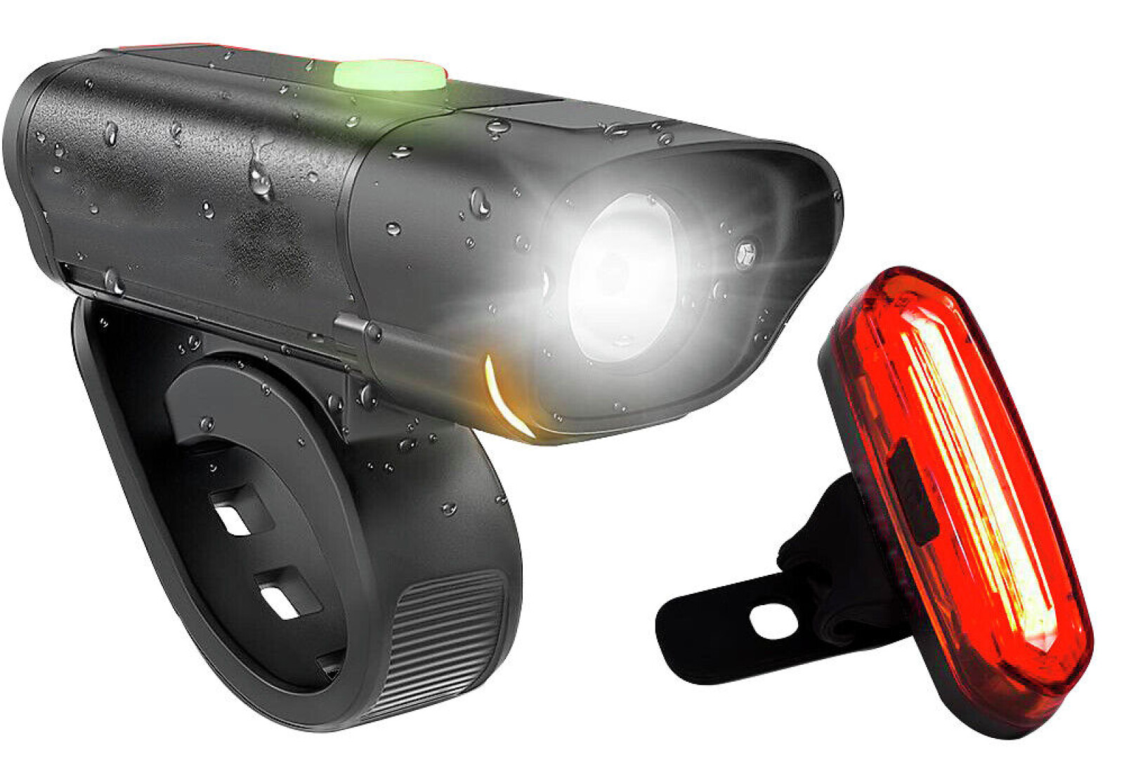 Pyörävalosetissä on sekä etu- että takavalo kätevästi USB-ladattavina versioina. Pakkaus sisältää USB-johdon.