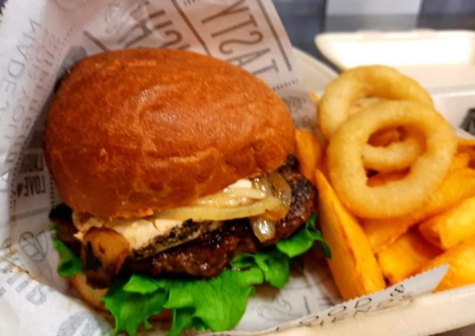 Burgeriateriat, jälkiruoka ja kahvit kahdelle