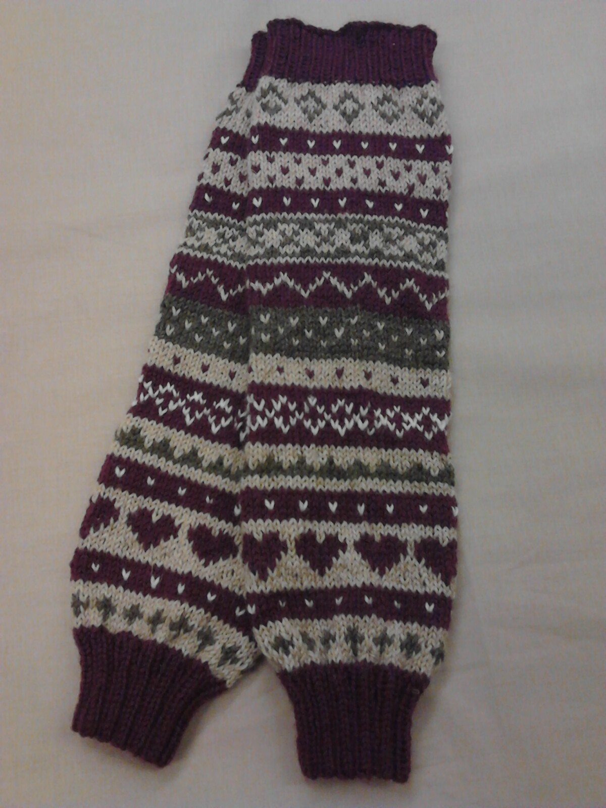 Kirjoneulesäärystimet, pituus n. 45 cm.