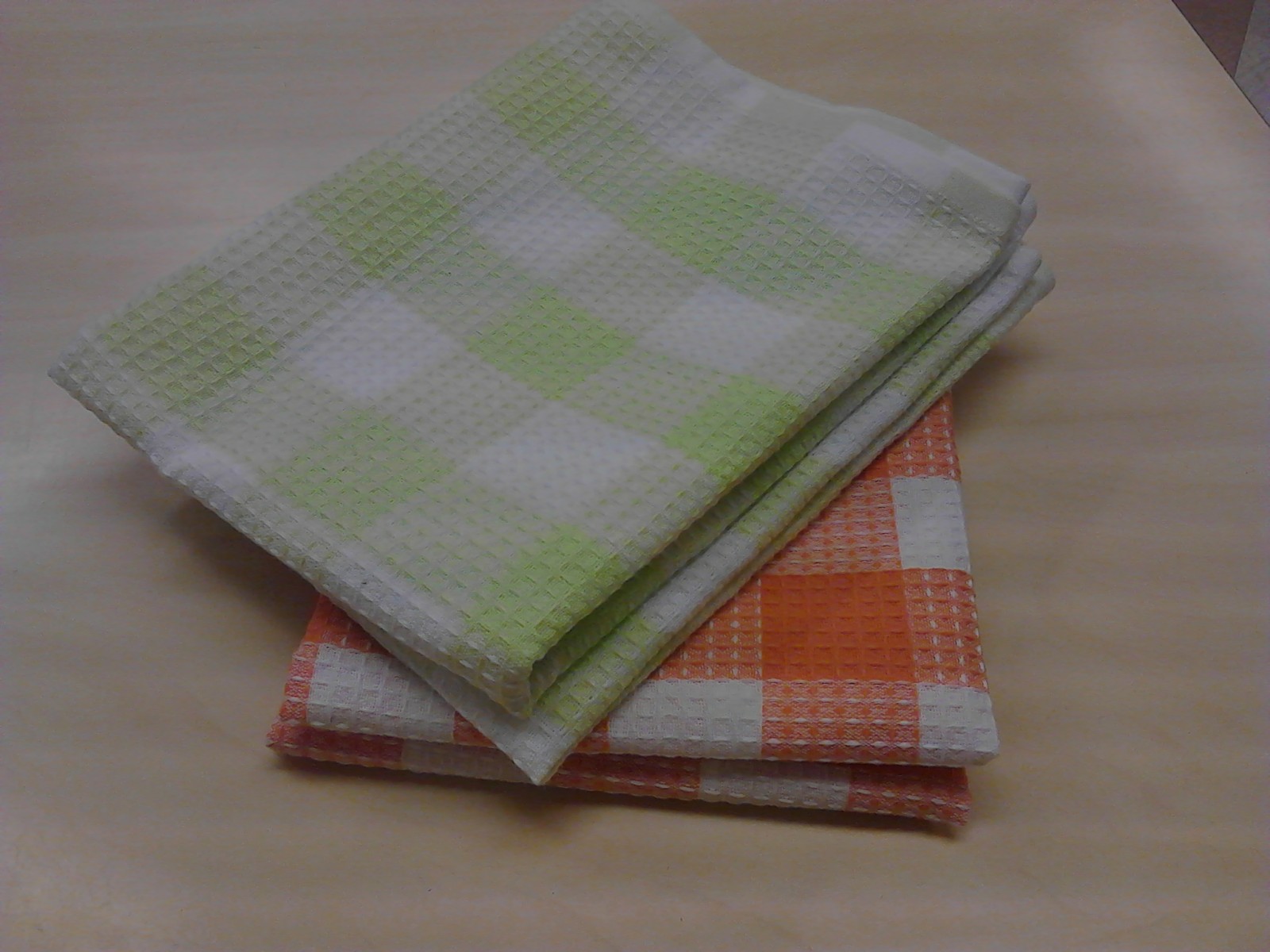 2 kpl oranssiruudullisia, vohvelikankaisia käsipyyhkeitä, koko 50×70 cm