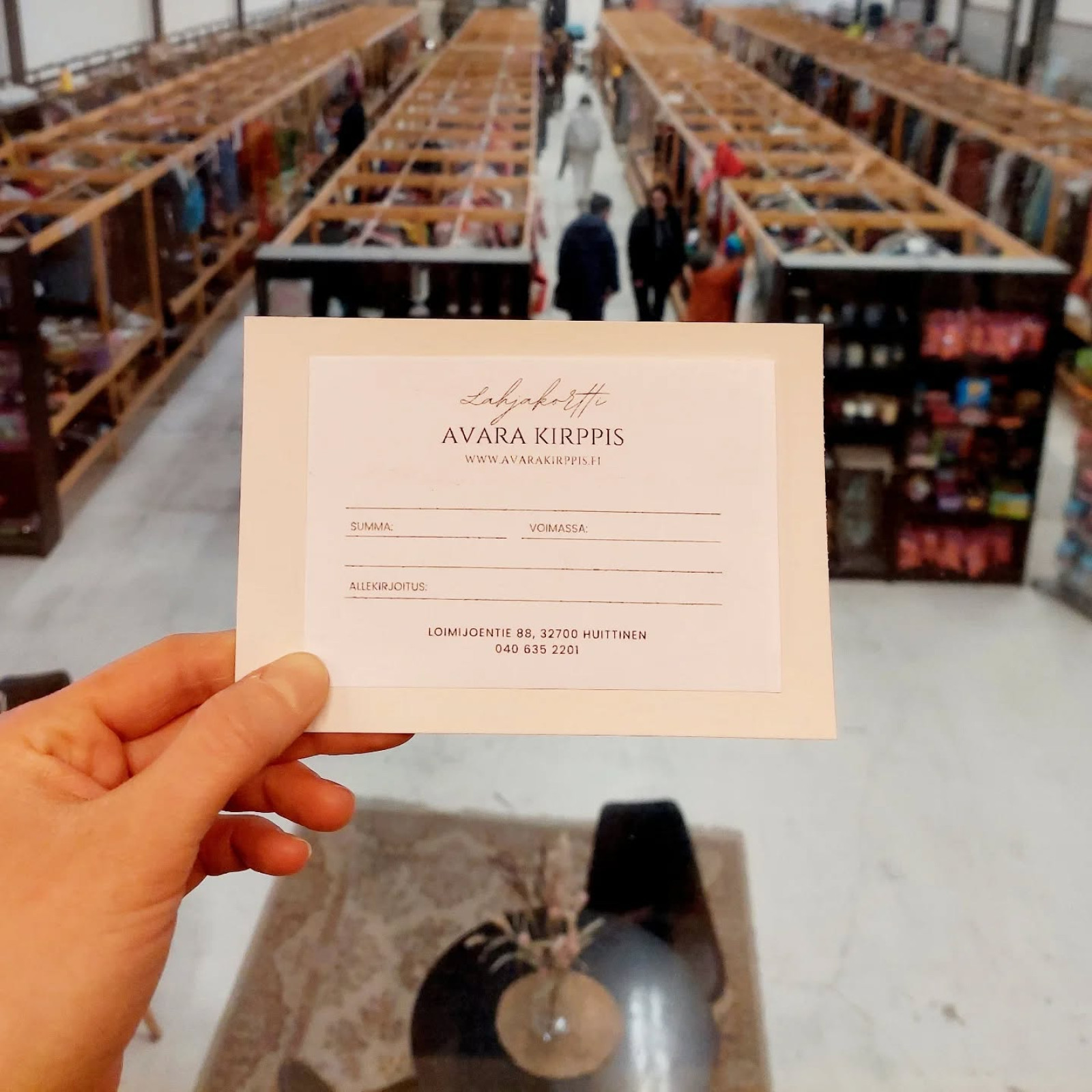 Lahjakortti Avara Kirppiksen pöytävuokraukseen 14 päiväksi.