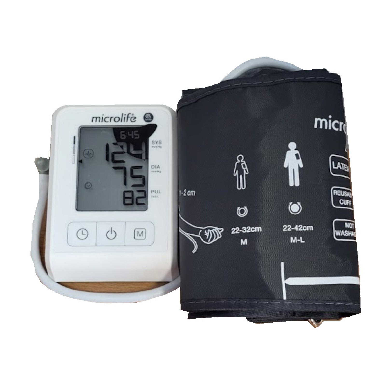 Mansetin koko M - L sopii käsivarrelle, jonka ympärysmitta on 22 - 42 cm. Mansetin istuvuuden ilmaisin-symboli näytössä kertoo, kun mansetti on kiinnitetty oikein.