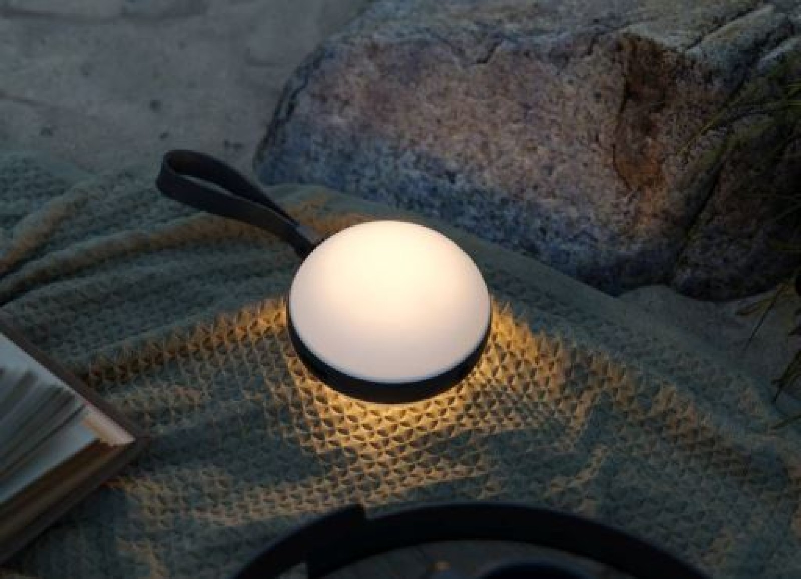 Valmistettu kierrätysmateriaaleista. Valaisimen pinta kestää vettä, joten se on kätevä ottaa mukaan esimerkiksi rannalle, puistoon tai terassille luomaan tunnelmavalaistusta lämpimiin kesäiltoihin.
