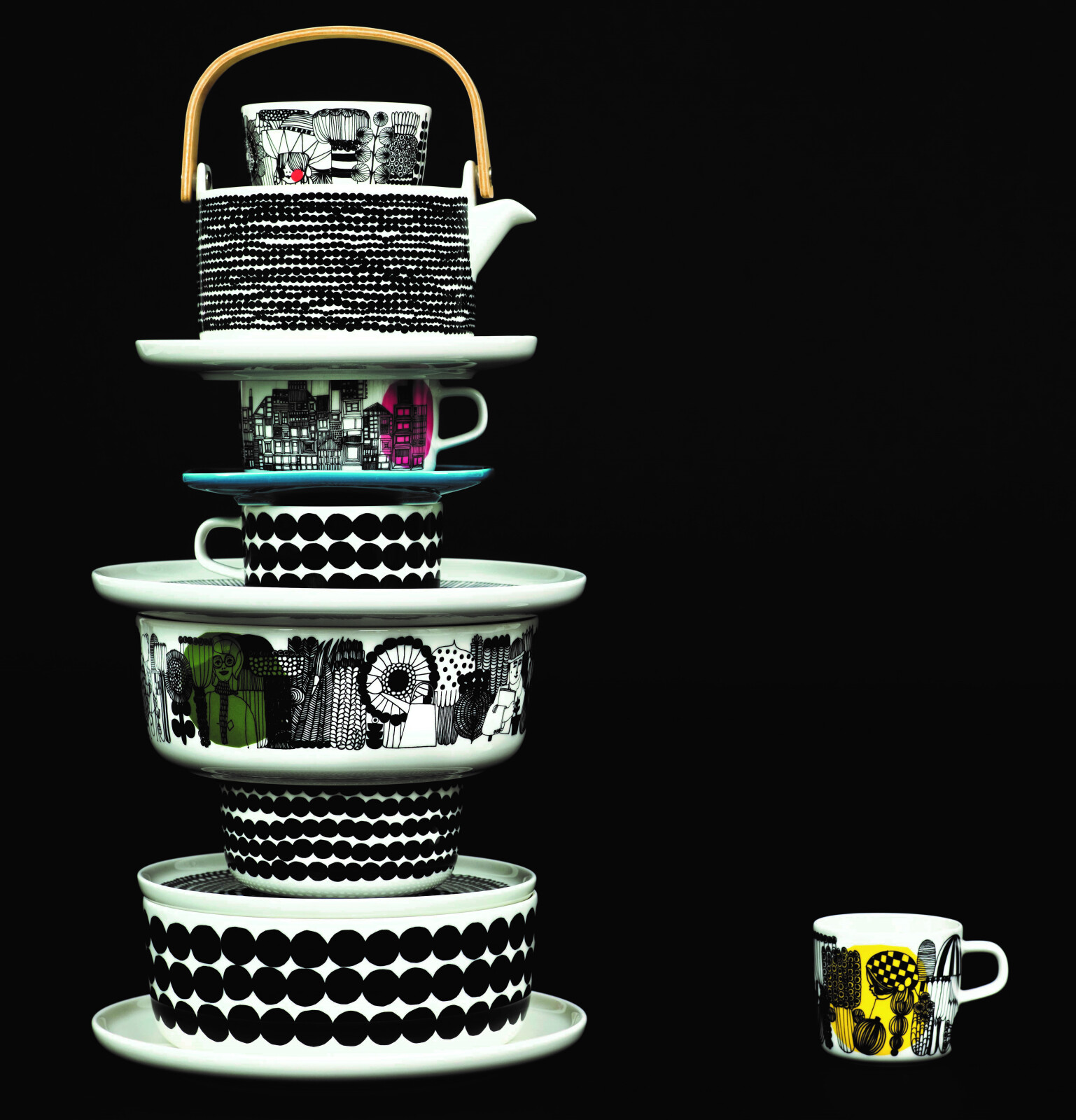 Näitä tuotteita ovat tarjottimet, mukit, lasit, kupit, lautaset, kulhot, purkit ja servetit.