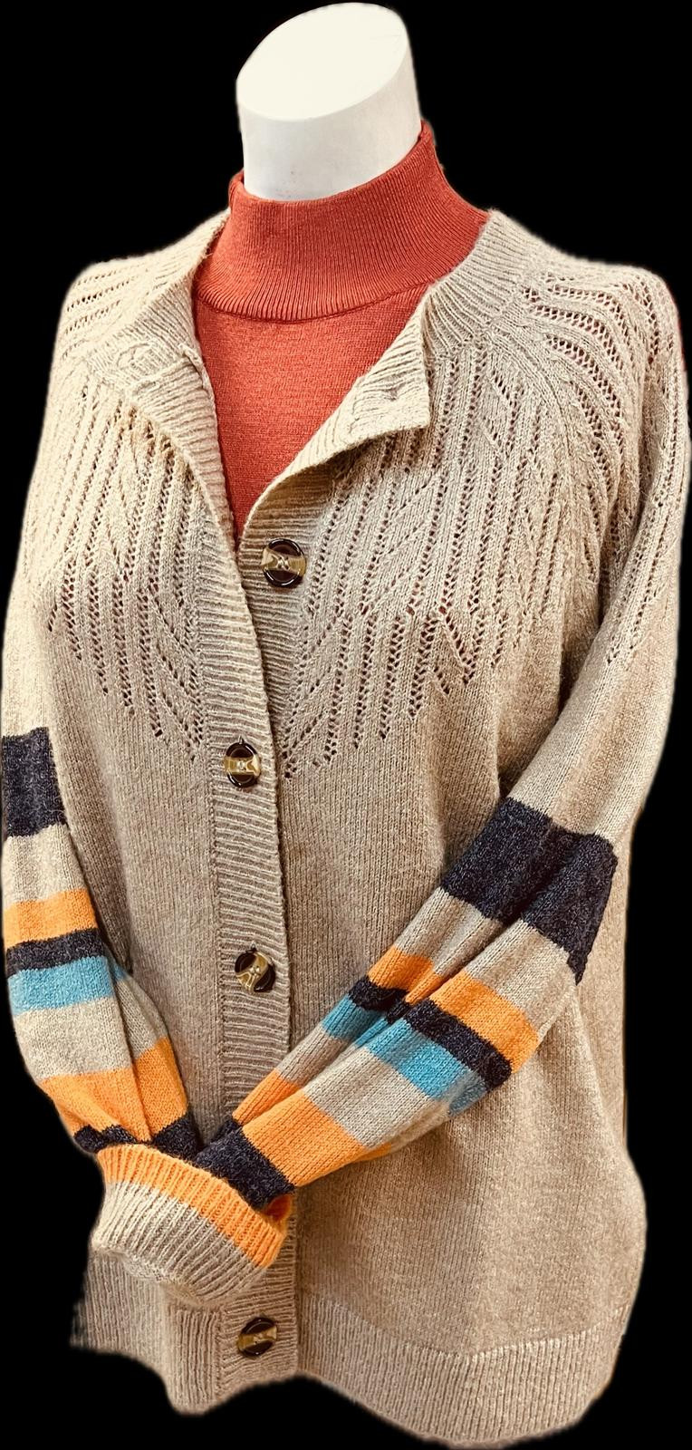 Villatakki - vaalea beige, raikastavin raidoin.